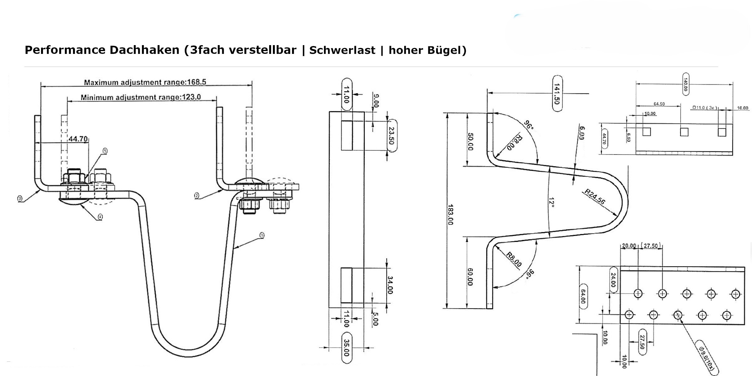Performance roof hook 35 6 3-fold adjustable, heavy load, high bracket
