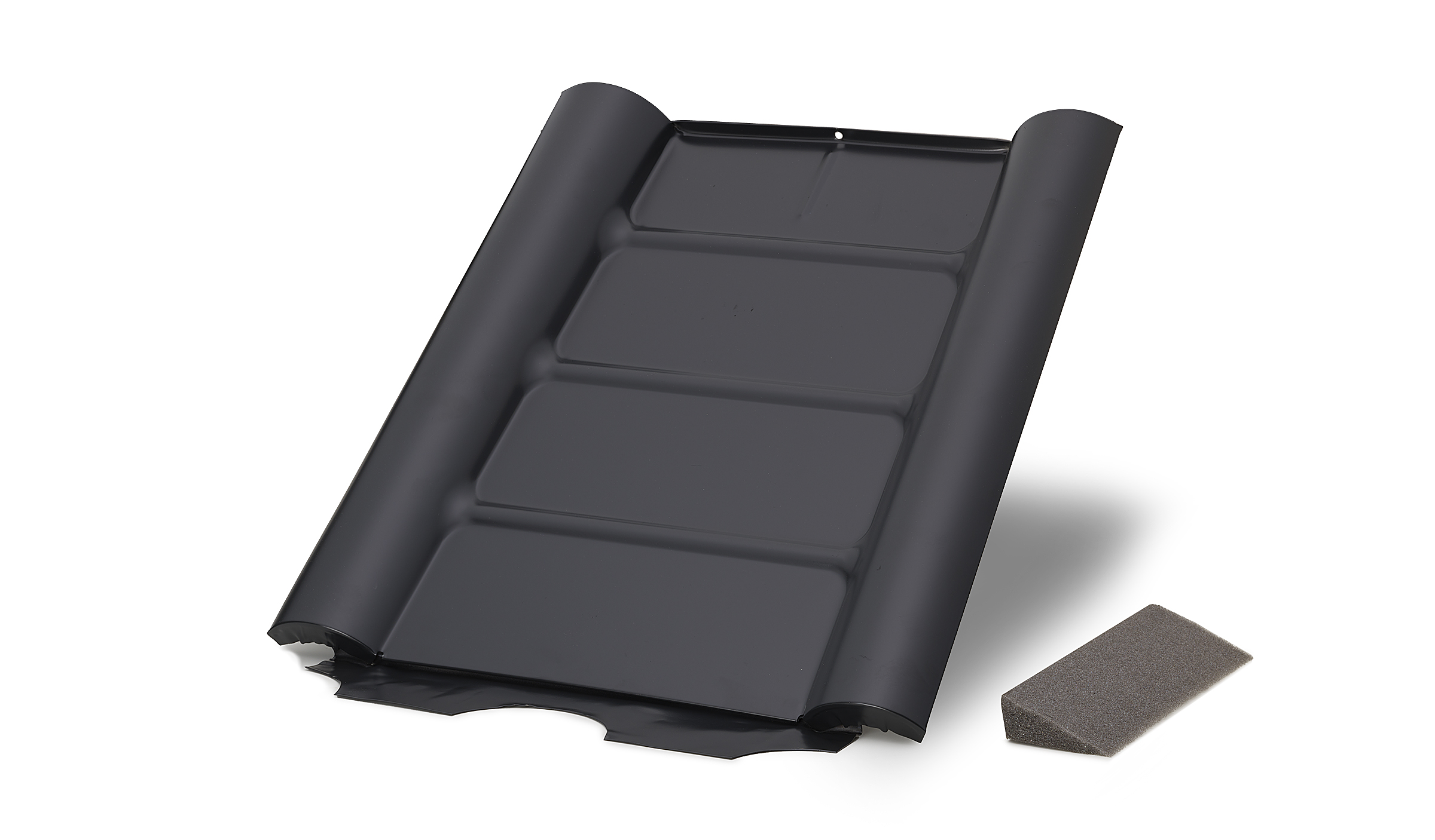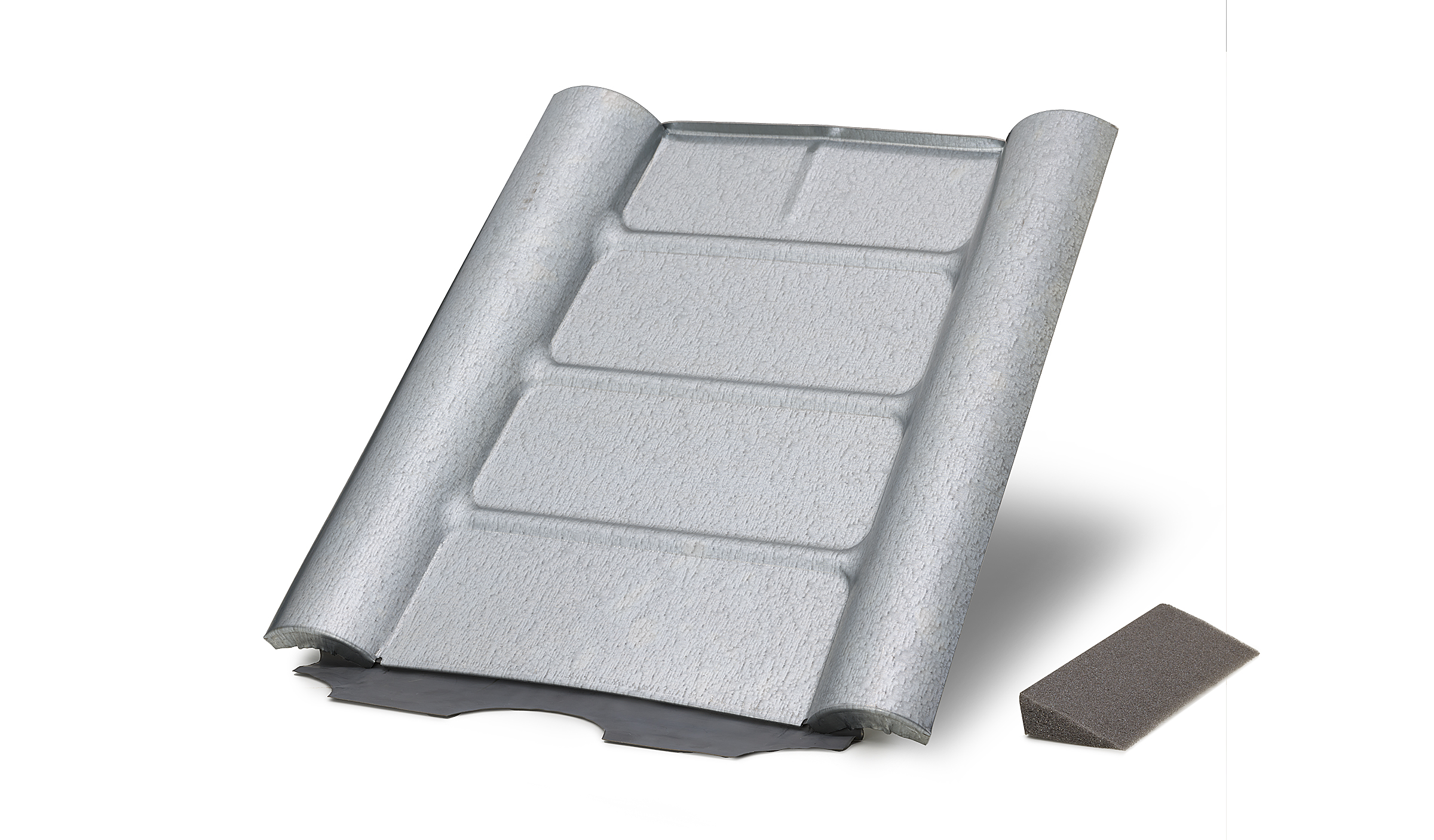 Universeller Ersatzziegel aus Aluminium für Beton-Dachziegel und verzinkte Stahlbleche. Inklusive Schaumkoffkeil für zuverlässige Abdichtung. Ideal für PV-Montagesysteme.